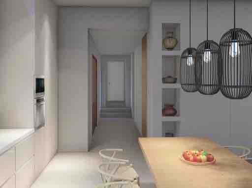 The state-of-the-art kitchen is a culinary enthusiast’s dream, featuring premium appliances, sleek cabinetry, and ample counter space, perfect for preparing meals to savor on the terrace while basking in the stunning vistas.